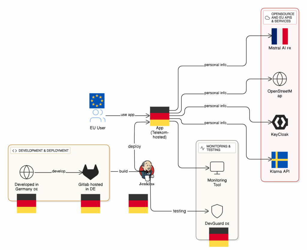 - Open Source: Für Identitäts- und Zugriffsmanagement (IAM) bietet Keycloak eine leistungsstarke Open-Source-Lösung. Im Bereich Payment gibt es europäische Anbieter wie Klarna oder Adyen, und für Location-Dienste ist OpenStreetMap eine hervorragende Open-Source-Alternative zu Google Maps.